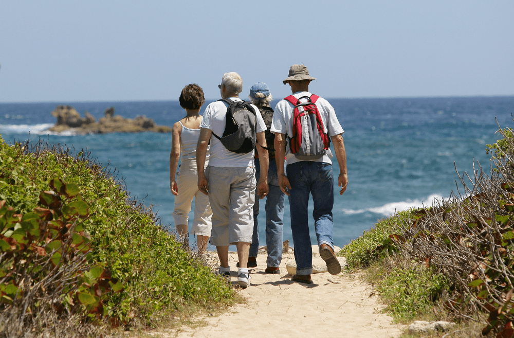 IT HELPS WITH WEIGHT LOSS Emma on the right of this picture is a busy Mum of three who suddenly realised she was leading a sedentary life. At the end of 2016 she took up NW and this is a picture of her in a Workout Walk (having climbed her first hill!) By September 2017